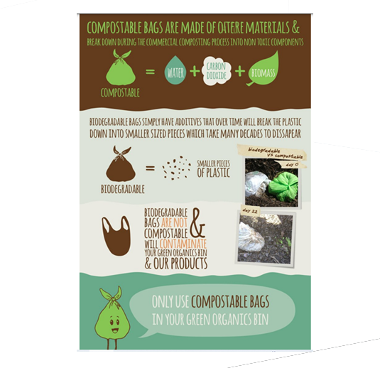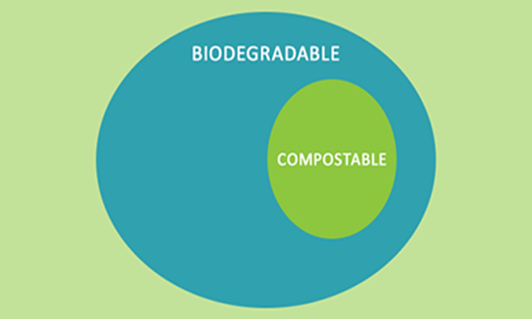 Compostable means that a product is capable of breaking down into natural elements in a compost environment. Because it’s broken down into its natural elements it causes no harm to the environment. The breakdown process usually takes about 90 days.